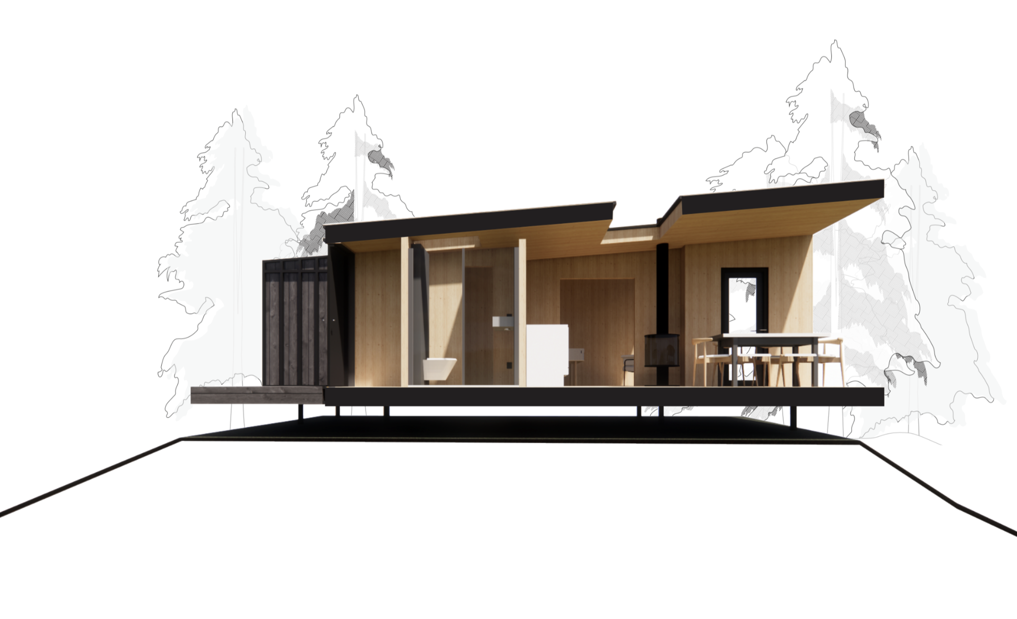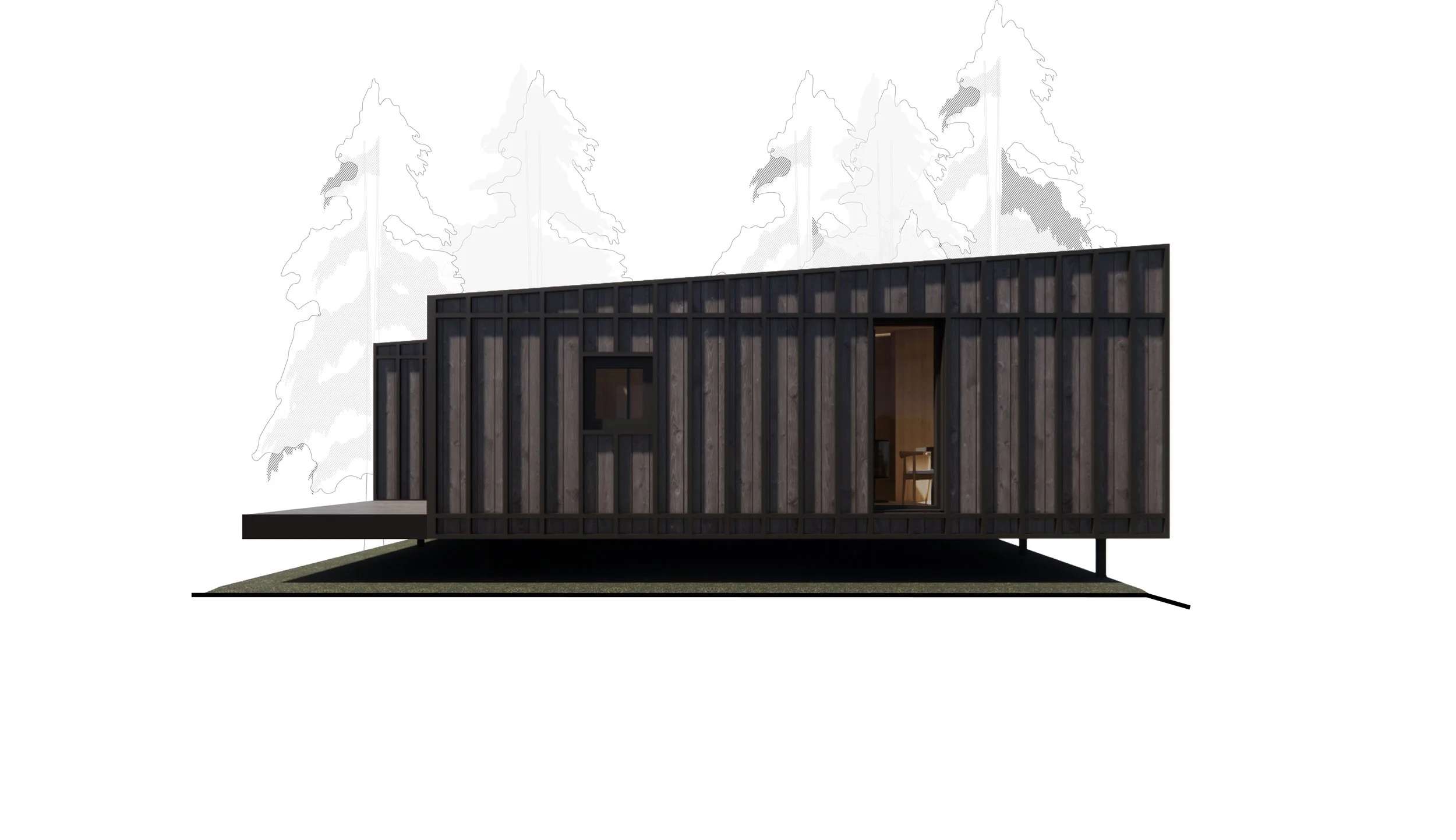 Utviklet i samarbeid med skogeiere og jegere og designet av Dark Arkitekter. Med utgangspunkt i Vju Hotel-modulene, tilpasser vi byggene for plassering og bruk. Grovkjøkken, tørkerom, hundebur og off-gridløsninger.